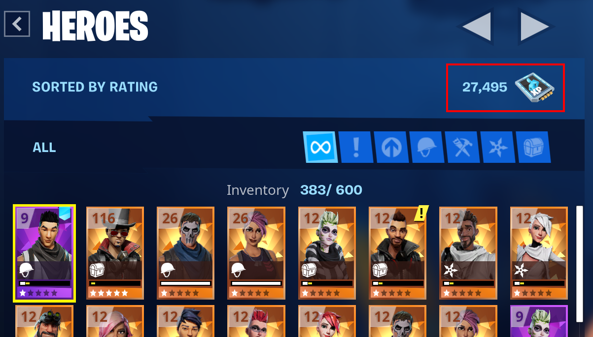 Hinweis: Wenn du noch nicht weit genug in der Geschichte von Fortnite Rette die Welt vorangeschritten bist, kannst du deinen Helden eventuell noch nicht weiterentwickeln (siehe nachfolgendes Bild).