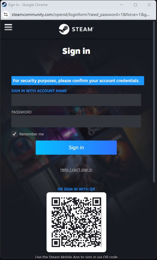 4. Un écran s'affiche pour vous demander de vous connecter à votre compte Steam. Utilisez l'adresse e-mail et le mot de passe de votre compte Steam pour vous connecter.