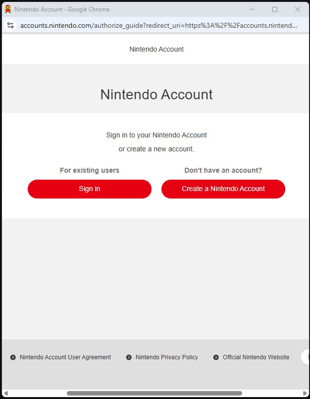 - Cliquez sur l'icône Nintendo sur la page de connexion.