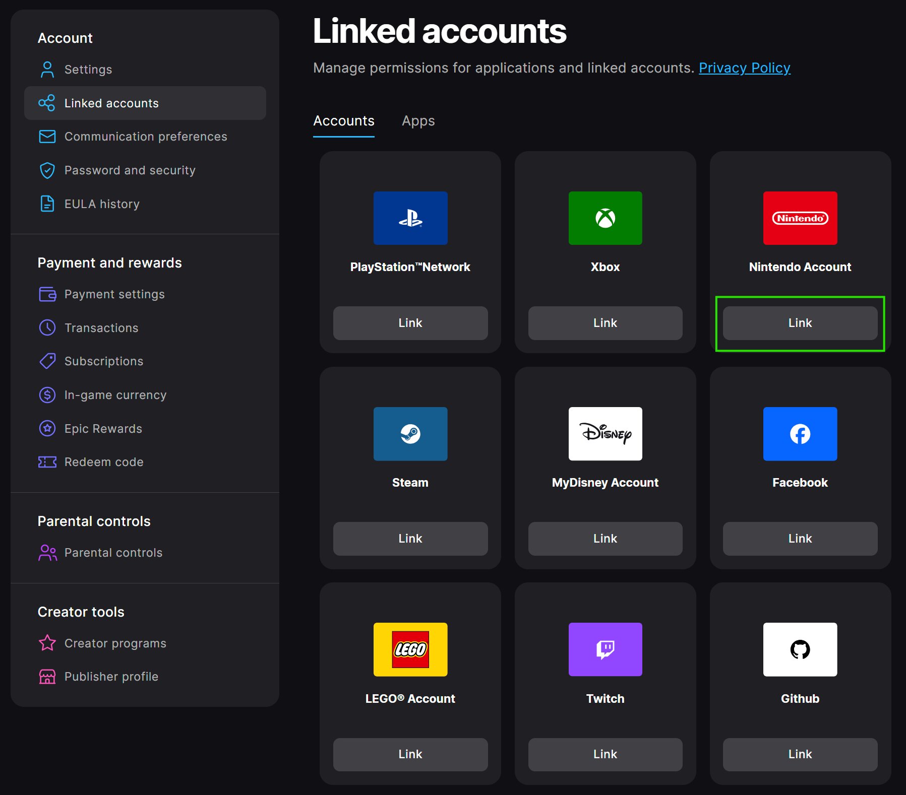 (S'ouvre dans un nouvel onglet)Votre compte Nintendo est déjà associé à un autre compte Epic Games