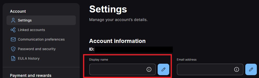Votre pseudo Epic Games est le nom qui figure sur votre compte sur le lanceur Epic Games, notre forum officiel, AnswerHub et lorsque vous jouez à l'un de nos jeux sur PC/Mac, Switch ou mobile.