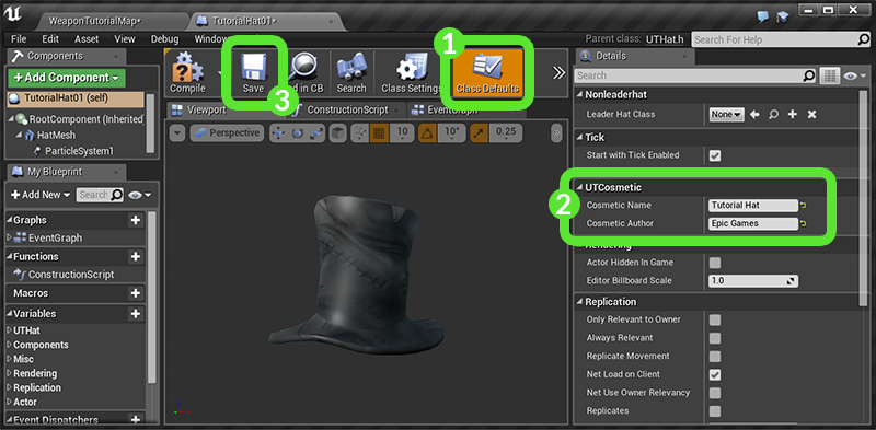 TutorialHat01) in the Content Browser and open it.